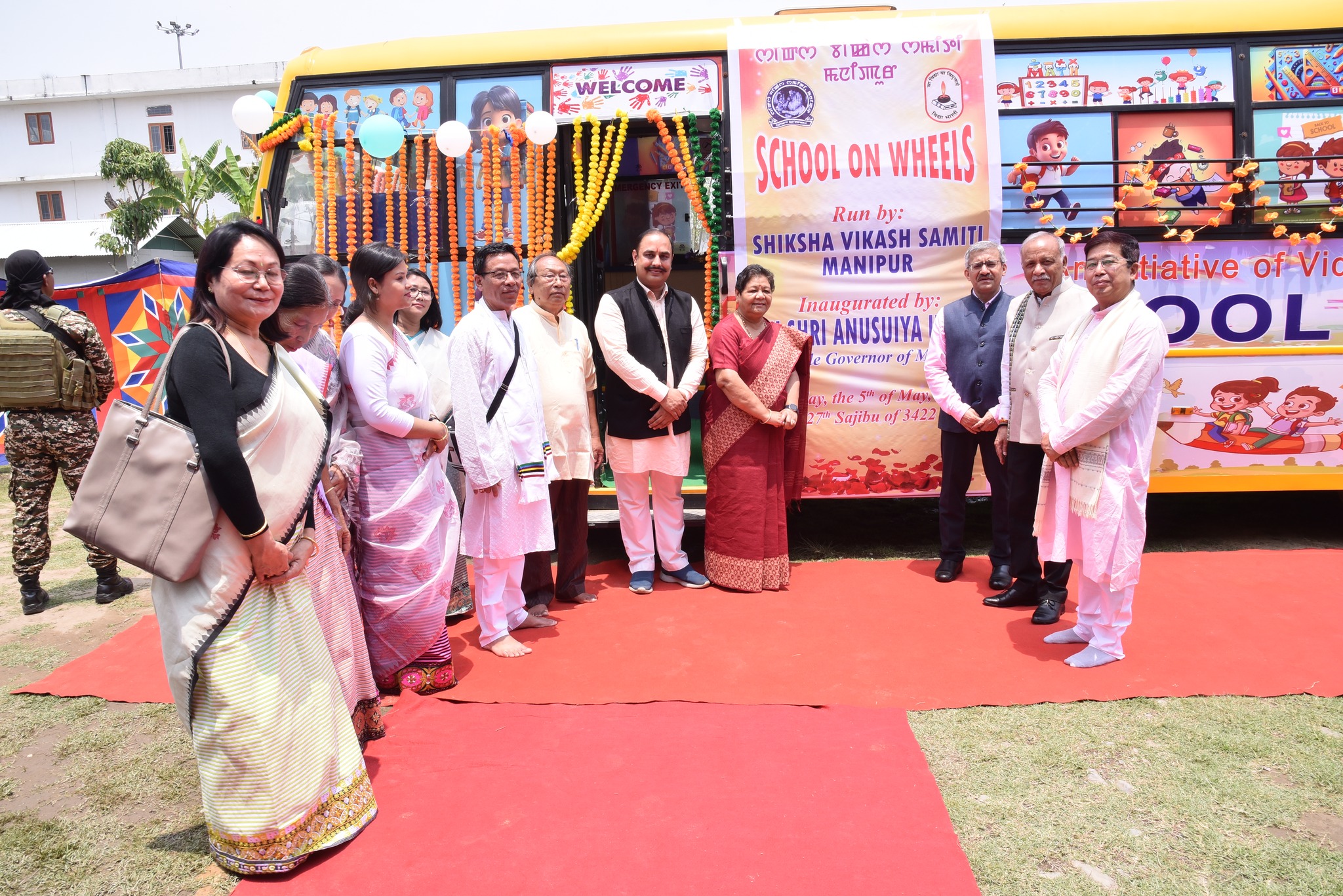 विद्या भारती के प्रथम स्कूल ऑन व्हील्स का राज्यपाल अनुसुइया ने किया शुभारम्भ।